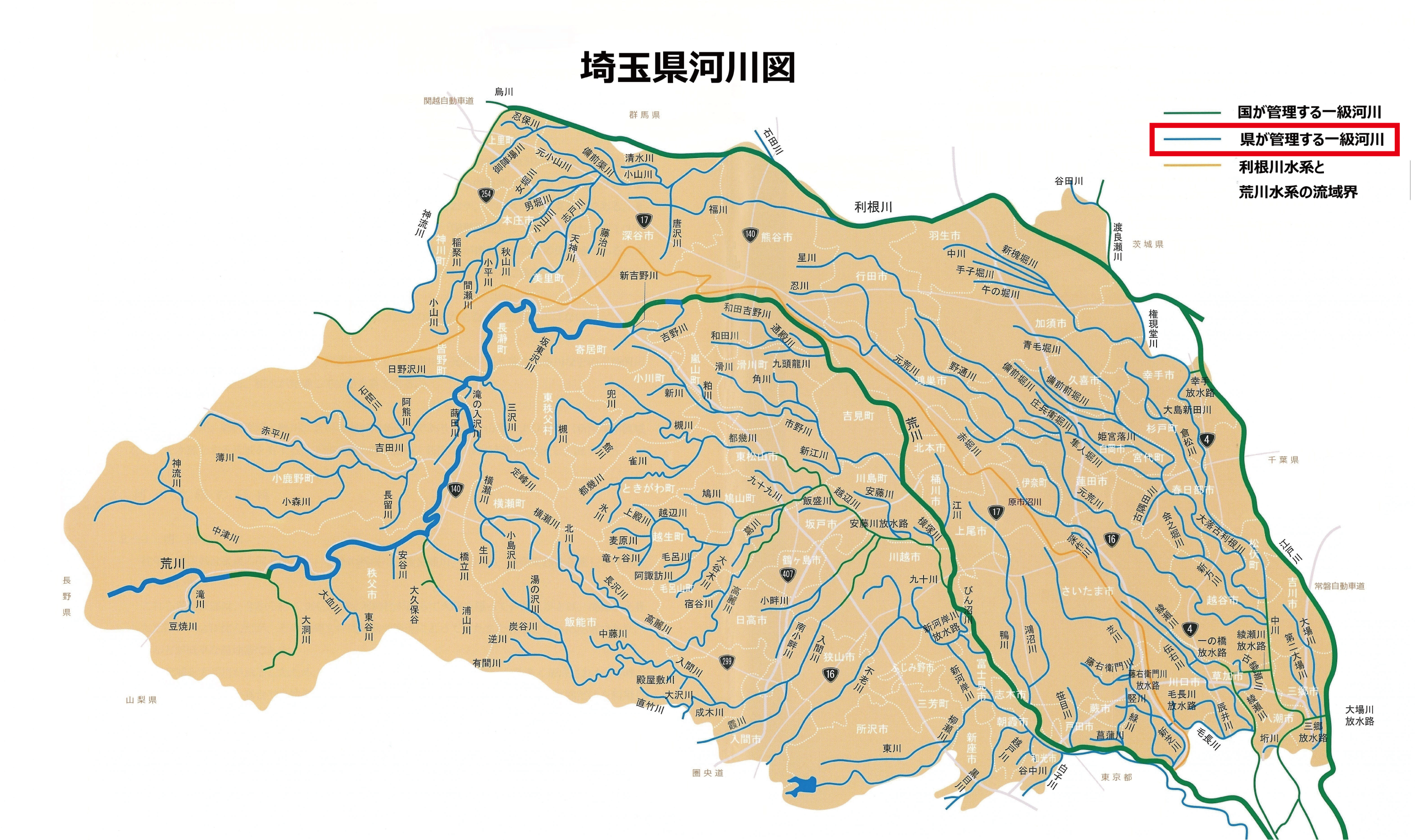 川の国応援団のうち県管理一級河川においてごみ拾いや草刈を行う団体です。(埼玉県河川図(PNG:6,204KB)(別ウィンドウで開きます))
