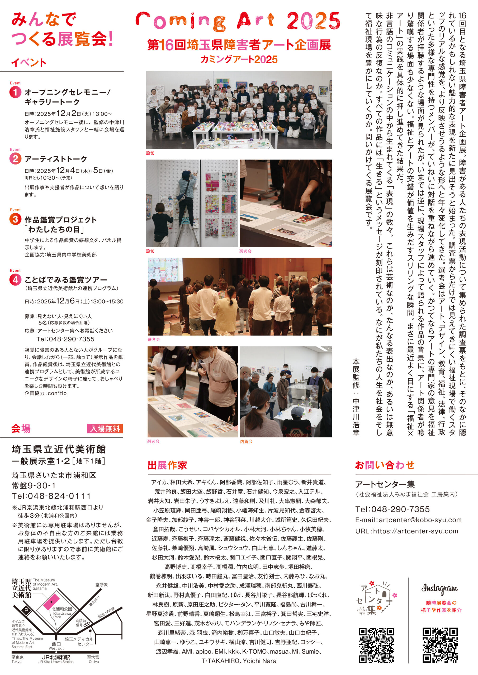 トップページ > 健康・福祉 > 障害者(児)福祉 > 障害者の芸術文化 > 障害者の芸術文化活動 > 埼玉県障害者アートフェスティバル開催実績 > 第16回埼玉県障害者アートフェスティバル(令和7年度・2025年度)