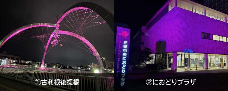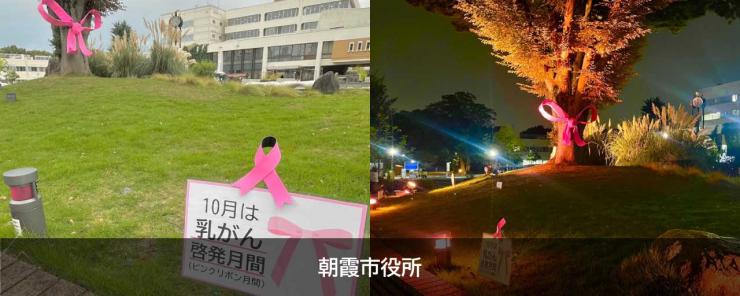 県内の各地で、乳がん啓発運動のシンボルである、「ピンクリボン」にちなんで、施設をピンク色にライトアップする「ピンクリボンライトアップ」を実施しています。