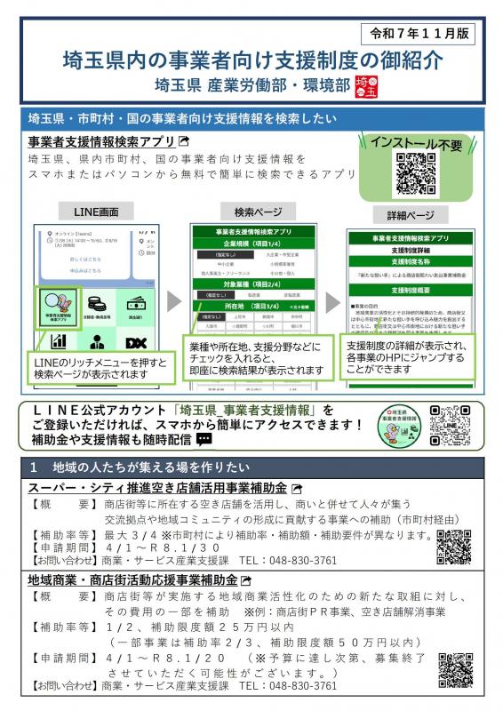 埼玉県、県内市町村、国の事業者向け支援情報をスマホまたはパソコンから無料で簡単に検索できます。