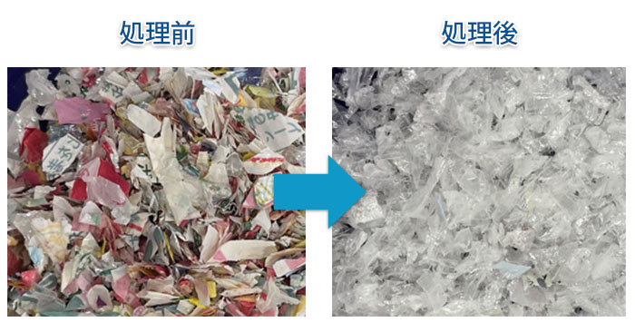 トルネードNTA-500は、2024年の第43回西海記念賞を受賞(埼玉産業人クラブ)しました。搭載している脱墨機能によりプラ表面のインクを落とすとともに、軽・重プラスチック、発泡片等の三種選別が可能。透明で質の高いフィルムに再生するので、元のフィルムに戻すことや、再び着色して様々な製品に再利用することができます。
