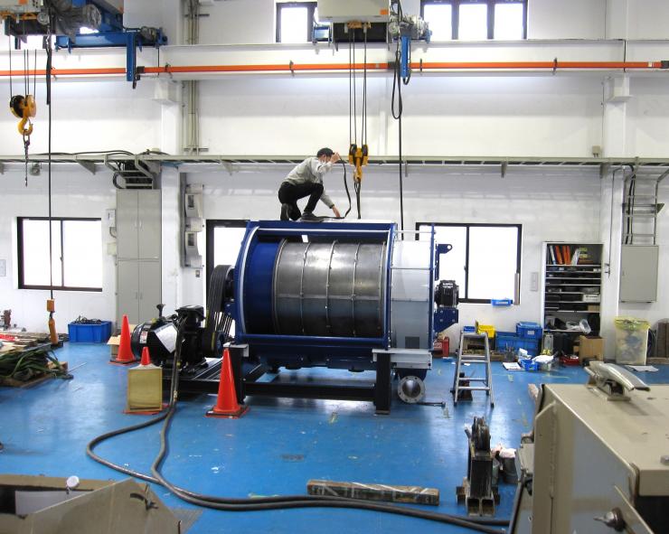 脱水機を組み立てている様子 洗浄粉砕機のローター部分