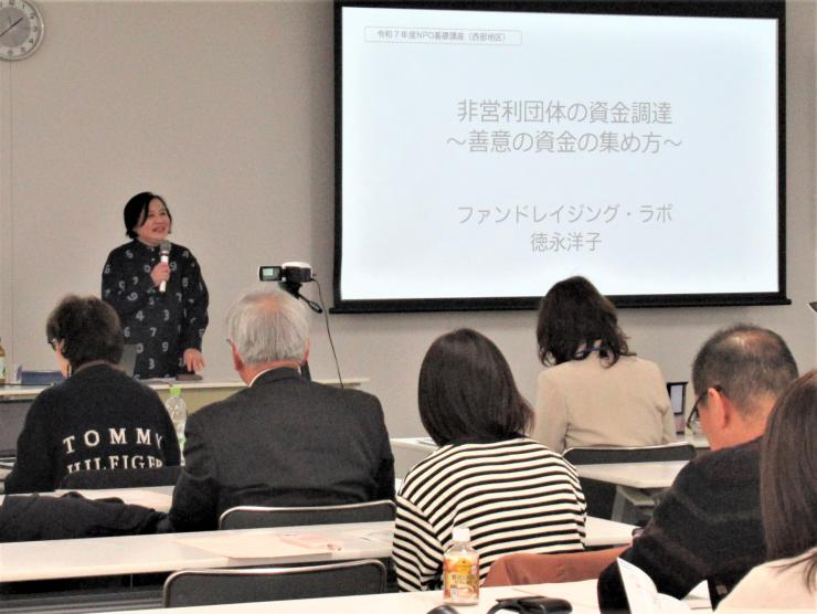今年度は、「非営利団体の資金調達~善意の資金の集め方~」と題し、ファンドレイジング・ラボの徳永 洋子氏に講義をしていただきました。