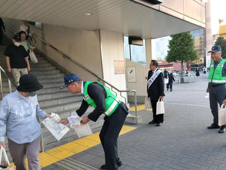 自転車盗難・特殊詐欺被害防止の意識醸成を図るため、防犯のまちづくりハンドブックや自転車ワイヤーロックなどの啓発物品を配布し、注意を呼びかけました。