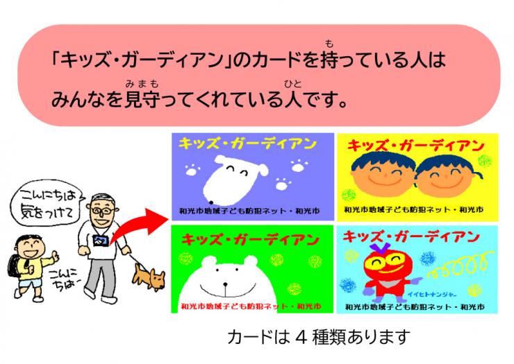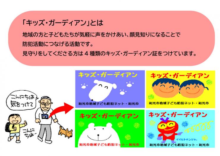 また、防犯活動をしている大人の人という意味で「キッズ・ガーディアン」という名札を下げているんです。そうすると「あっ!キッズ・ガーディアンの人だ~」って声をかけられるんです。キッズ・ガーディアンには、約670名の方が登録されています。