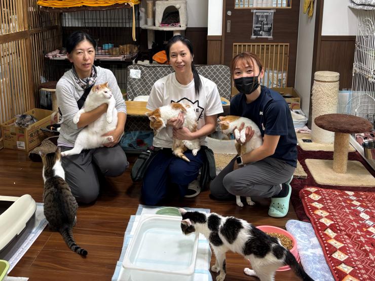 シェルター(保護施設)で、主に高齢なシニア猫や医療ケアが必要な傷病猫を保護・飼養しています。今は、スタッフ35名で猫137匹、犬4匹の面倒を見ています。