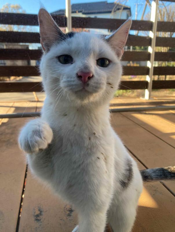 保護猫。人慣れしていて、足元にすり寄ってきたり、お腹を見せてゴロゴロ転がったりします。 食欲旺盛で元気に走り回っています。 ノミ・ダニ駆除薬投与済み。 |