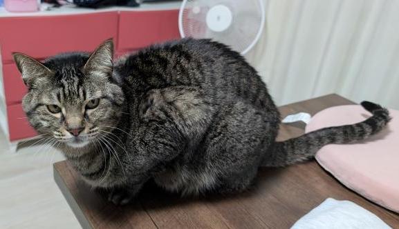 元さくら猫。エサをもらっても他の猫がいると最後に食べるほど穏やかで、どんな性格の猫とも仲良くできる優しい仔です。子猫の時のケガが原因と思われる変形性脊髄症により後ろの左足をひきずってゆっくり歩きます。(いずれサプリ摂取など緩和ケアが必要になる可能性あり) 高い所へのジャンプはできず、他の猫のケンカを止めに行くときしか走りません。6月に猫の喧嘩声を聞きつけて道をダッシュで渡ろうとしたときに車に轢かれ、肺挫傷や顎がずれる重傷を負いましたが、治療のおかげで元通りの生活が送れるまでに回復しました。現在体重6.8kgあり、ダイエット中です。 人が大好きでずっと追いかけてきます。在宅時間が長く、給餌の管理ができる環境のご家庭に向いています。 ウイルス検査の結果、猫エイズは陽性、猫白血病は陰性。5種混合ワクチン接種済み。右耳先カットあり。 初期治療費等の一部として譲渡成立時38,000円ご負担願います。 ご連絡は飼いたい方ご本人からお願いします。 |