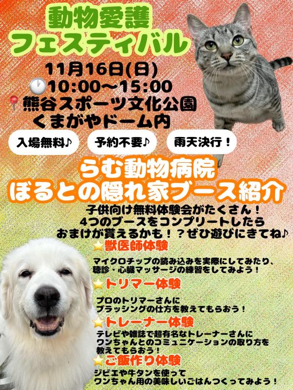 後援:公益社団法人埼玉県獣医師会、熊谷市、寄居町