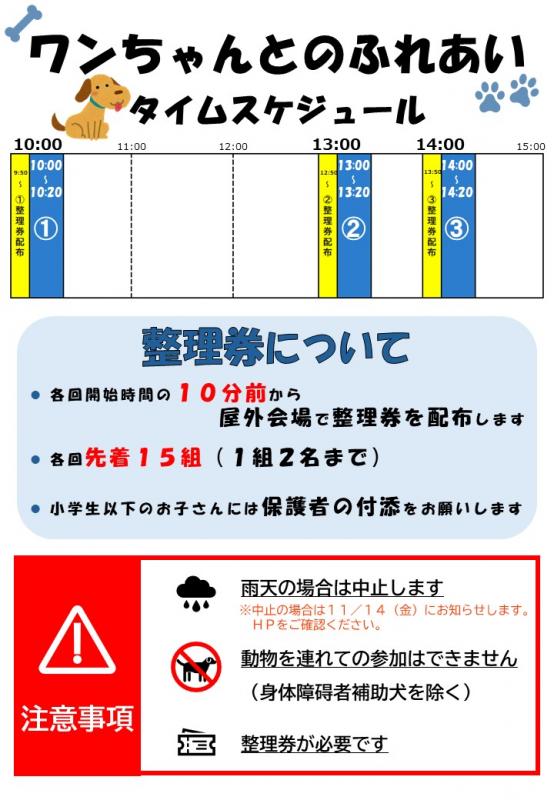 「ワンちゃんとのふれあい」タイムスケジュール(PDF:261KB)(別ウィンドウで開きます)