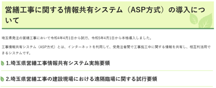 県土整備部では、開示請求者の利便性向上のため、埼玉県情報公開条例の開示請求手続によらず、インターネットによる工事設計書等の情報提供(令和2年2月1日から運用)を行っています。