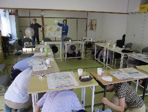 【コメント】 「地震ハザードマップを保管していますか」の問いに苦笑する参加者の方もいらっしゃいました。あらためて、避難のポイントを読み返し、避難場所の確認もしましょうと呼びかけさせて頂きました。高齢になるとテーブルにもぐる体制をとることも大変なので、訓練で自身の体を再認識することができたという感想も頂きました。