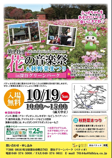 グリーン・ツーリズム埼玉(グリツリ埼玉) > グリーンツーリズムをもっと楽しむ > イベント情報 > 第14回 花の音楽祭&秋野菜祭りin深谷グリーンパーク(10月)