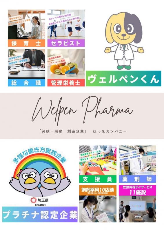 ヴェルペンファルマは、地域の皆様やお取引先の皆様のそばに、いつでもそっと寄り添う存在でいたいと考えています。社内には薬剤師・管理栄養士・社会福祉士・保健師・相談支援専門員など様々な職種の社員がおり、それぞれが専門性を活かして協力・連携しあいながら、地域にお住いの方々がいつまでも住み慣れた地域で自分らしい暮らしを実現できるよう「地域包括ケアシステム」の構築・更なる実現を目指しています!