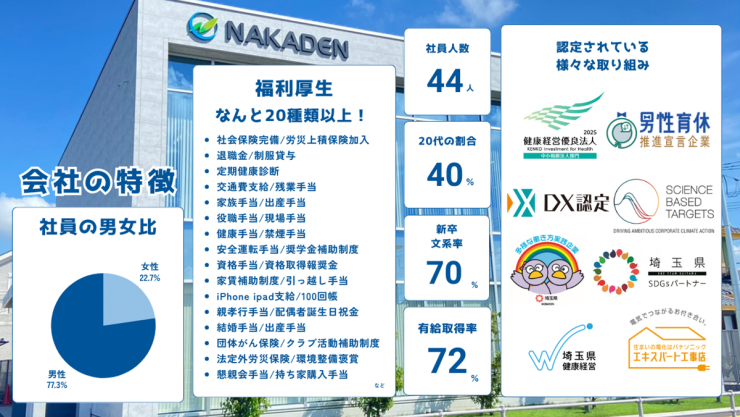 | 認定状況・対応情報 | 多様な働き方実践企業|健康経営実践企業|埼玉県アライチャレンジ企業|パートナーシップ構築宣言取組企業 |