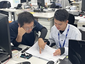 私も入社前は電気の知識はありませんでしたが、会社説明会で社長からお話しいただいた会社の将来性や社内を見学したときに社員の方々が楽しそうに働いている様子に魅力を感じ入社を決意致しました。