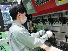 弊社は金属加工業ながら、火花の散るような溶接や、材料を熱することはしていない為、一部作業を除き文系・高卒の方でもはじめやすいです。鉄の板を折り紙のように「折ったり」「切ったり」「穴を開けたり」「組み立てたり」することで製品を作ります。年齢役職問わず全員が「改善提案」をする社風のため、製造業らしい改善の習慣をお付けいただけます。