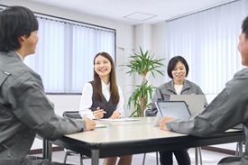 邦栄建設は「給与が良い」「休暇がとれる」「希望が持てる」「かっこいい」の“新4K”を掲げ、働き方改革と業界イメージの向上に取り組んでいます。完全週休二日制の導入や育児・介護休業制度の整備により、ライフステージに応じた柔軟な働き方を実現。若い世代が安心して長く働ける環境づくりを大切にしています。
