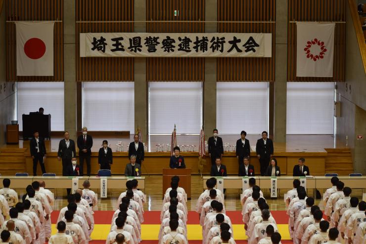 令和7年11月20日、リプロ武道館で行われた令和7年度埼玉県警察逮捕術大会に原委員が出席し、挨拶を述べました。